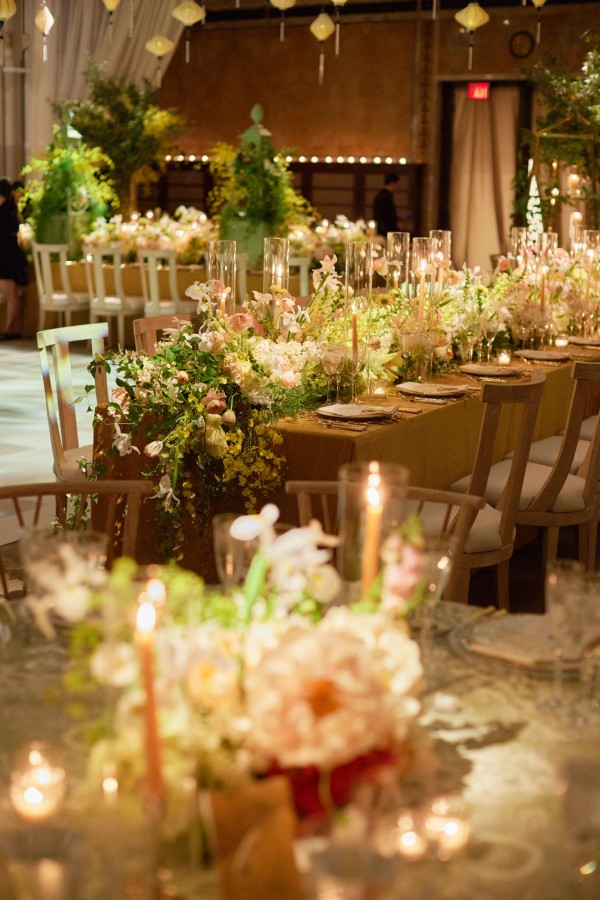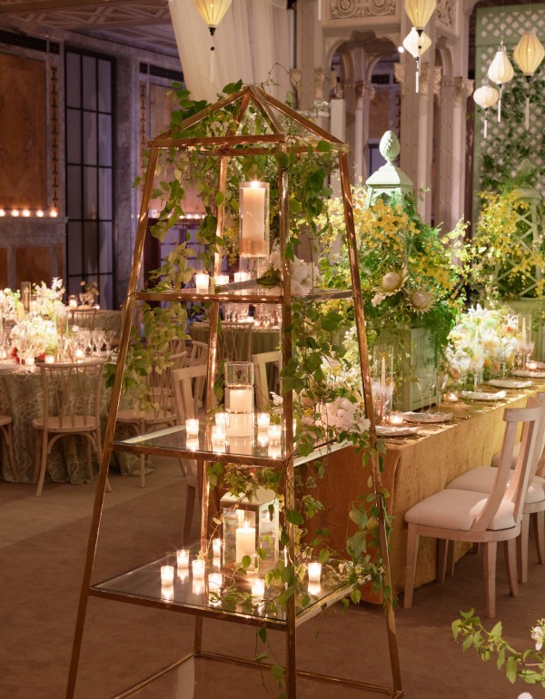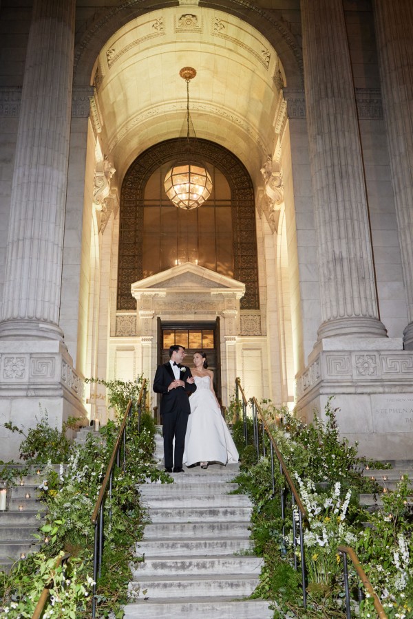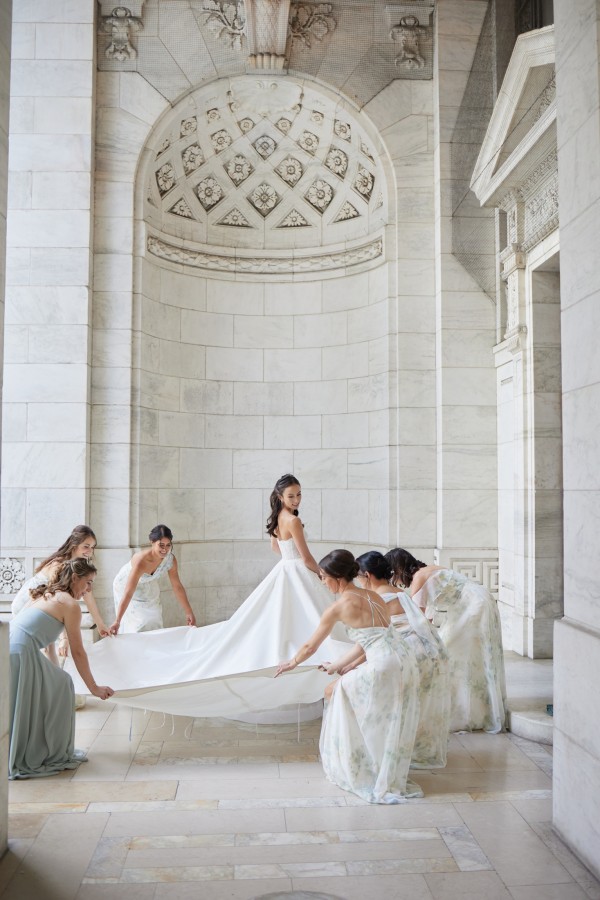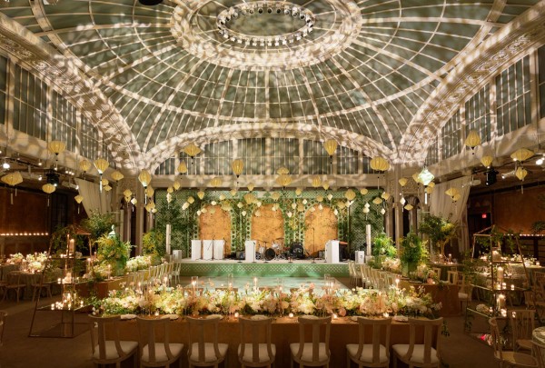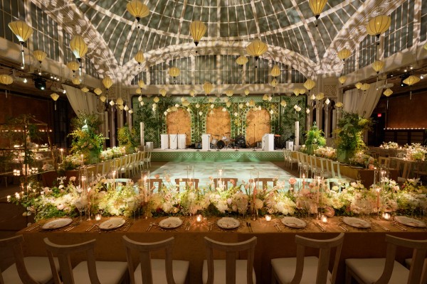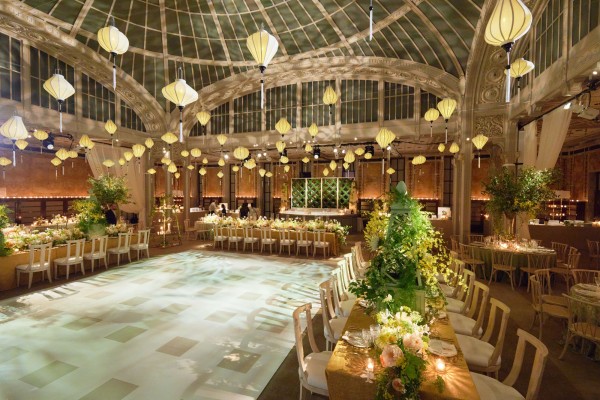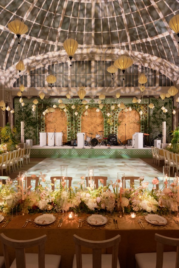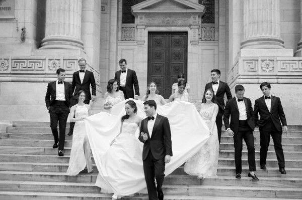 Sasha and Tom had a beautiful summer wedding at the iconic New York Public Library. We celebrated marrying the groom’s European background with the bride’s asian culture through the design of the space – an elegant European garden with a nod to asian culture through chinoiserie-esque details and artfully composed florals that looked more sculptural than bouquet, combining blooms such as protea and peonies. A striking palette of French green and marigold saturated the spaces and made for a rich and vibrant affair. A food station style reception kept guests up and mingling throughout the evening with a plethora of themed stations such as italian and even served some recreation’s of the bride’s families famous recipes. An afterparty at Paradise Club in Times Square kept the festivities going all night long!