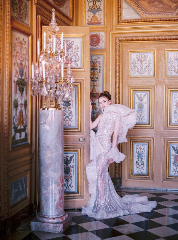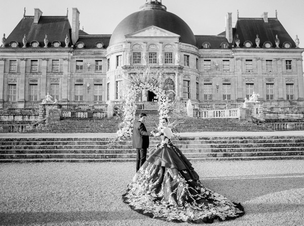 We flew to Paris with six couture dresses from around the world for to produce this epic editorial at Chateau Vaux-le-Vicomte, one of the top ten most luxurious venues in the world according to Town & Country Magazine. We wanted to incorporate the magnificent history and 17th century architecture of this venue with a fashion forward nod. From initial concept, logistical planning and onboarding an all-star international vendor team, to the final design and fashion styling – we planned this shoot to perfection to show off this incredible property, which is said to be the pre-cursor to Versailles.