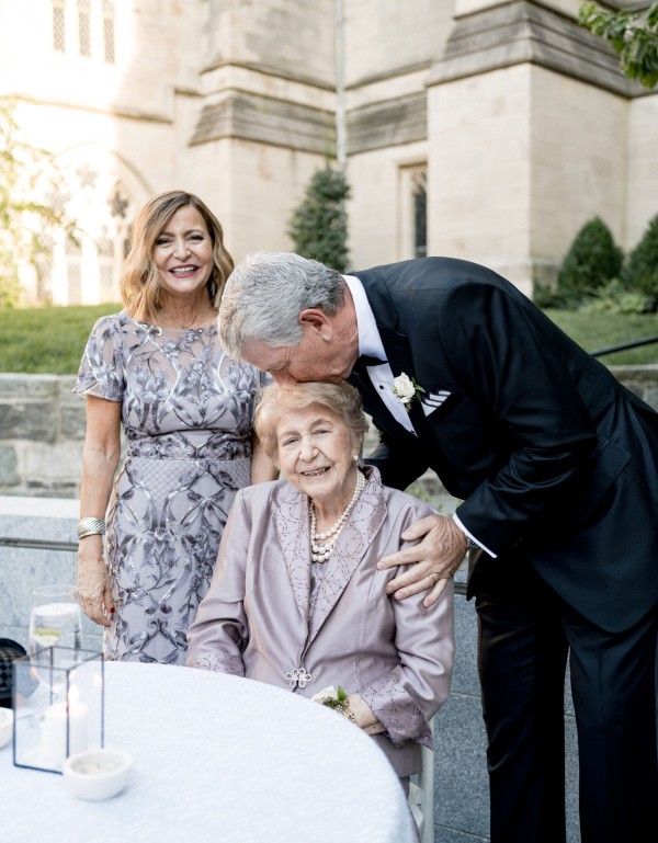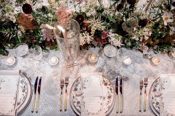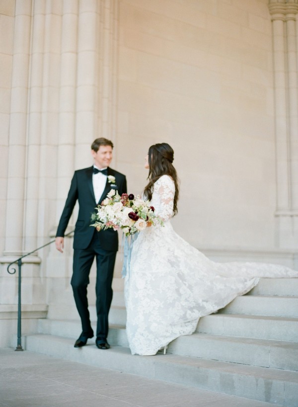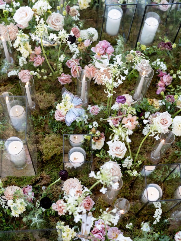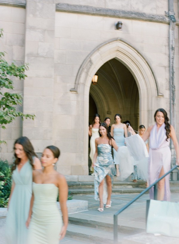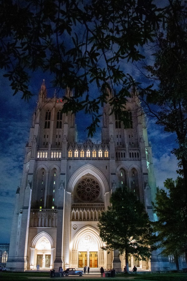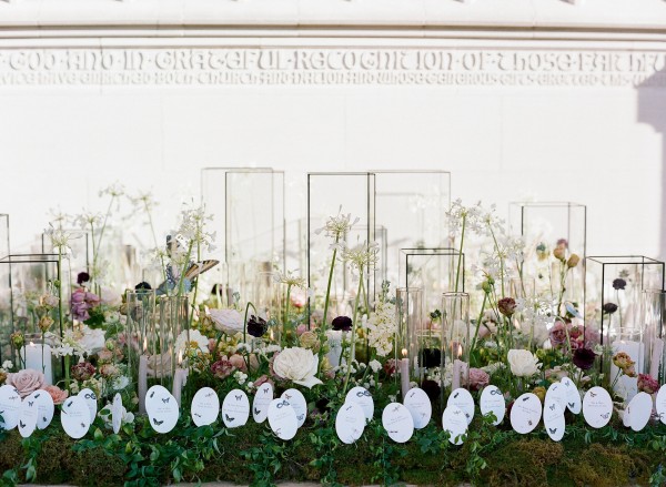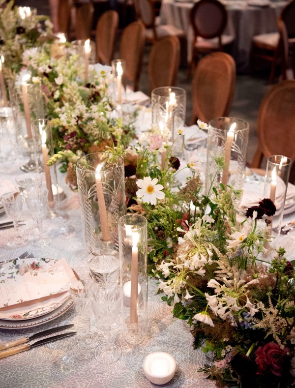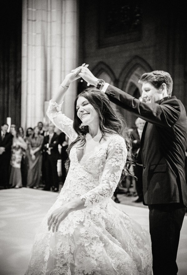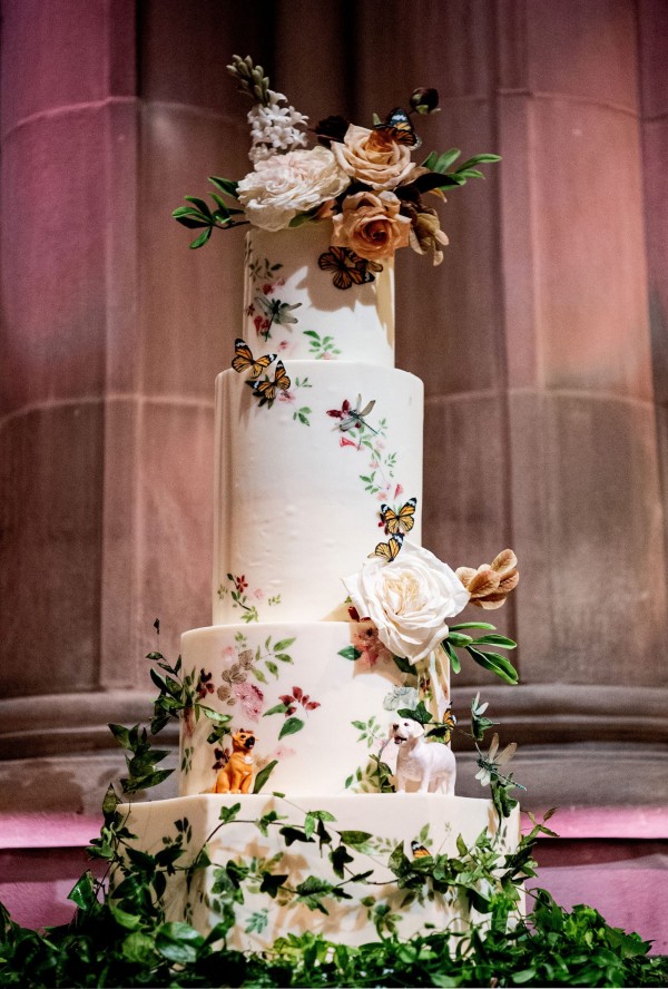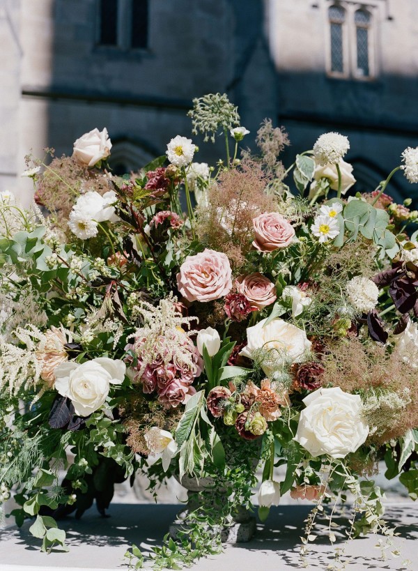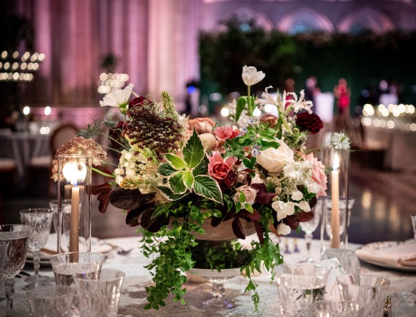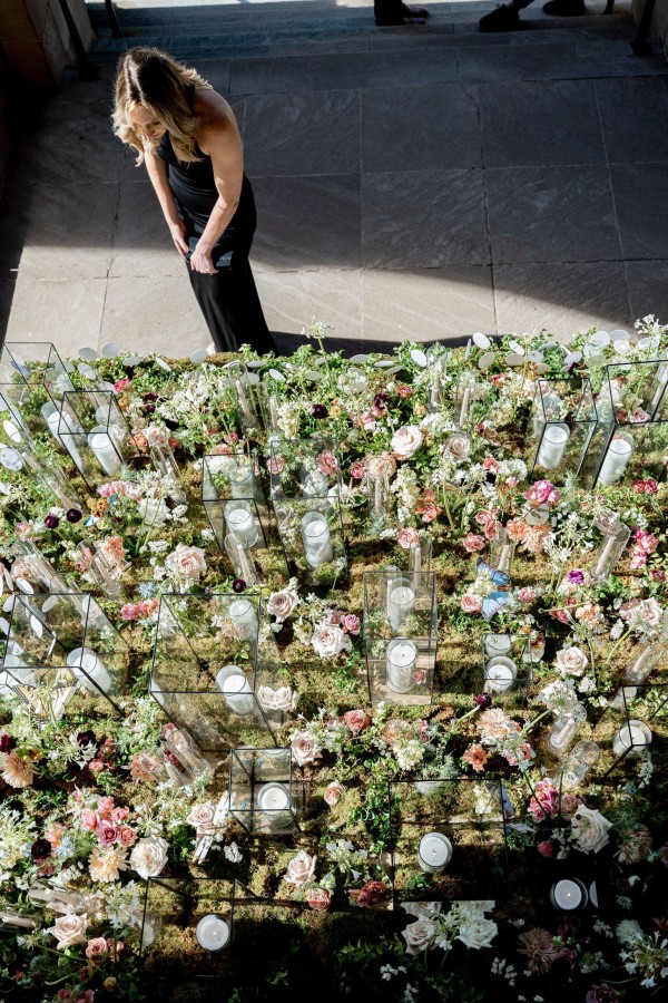 We designed an enchanted late summer evening at the iconic Washington National Cathedral for Mary and Paul. We drew inspiration from imagining a moonlit garden setting combined with the awe-inspiring gothic architecture of the Cathedral itself (the design of the Cathedral in the early 1900’s was heavily based on Notre Dame in Paris.). The mass took place in the Great Choir with cocktails following in the courtyard. Guests then entered the dinner and dancing reception in the Great Hall of the Cathedral, which was totally transformed for this event from how it typically looks for a Sunday Service. The client’s main request for the reception? A seated dinner but with a very fun party vibe! A large central boxwood and floral garden bar with thousands of blooms anchored the massive space and served as a central hub for the evening. Guests danced the night away to one of our favorite New York dance bands — or at least until it was time to head to the after party.