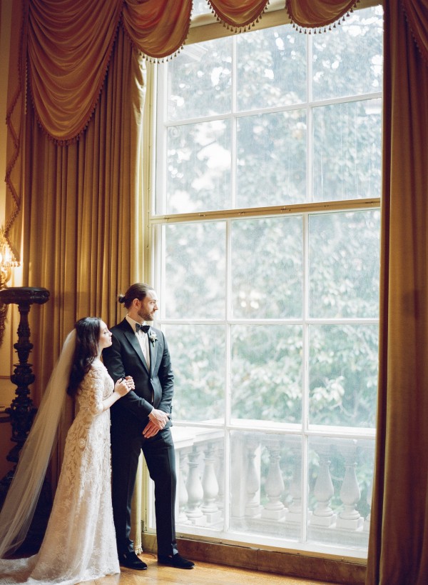 Nésa (Iranian) + Joe (Alaskan) had a celebration imbued with layers of meaningful cultural elements. They fell in love with the Anderson House – one of DC’s most fashionable [florentine] mansions along Embassy Row. They had a traditional Persian “aghd” ceremony and sofreh. The fish that was served for dinner was shipped straight from Alaska by Joe’s family. They had traditional sweets from a Persian bakery on the dessert bar along with a petite wedding cake for cutting, and of course some European-inspired macaron towers and croquembouches. We designed a wedding that combined Old-World european elegance and fashion-forward styling. We combined contrasting elements – ghost chairs and luxurious velvet ribbon, heavy, textured linens in a garden setting and loose, organic centerpieces with fine crystal glassware and candlesticks. even their paper goods paired organic calligraphy with a modern type and wax seals. *FEATURED IN GERALDINE MAGAZINE*