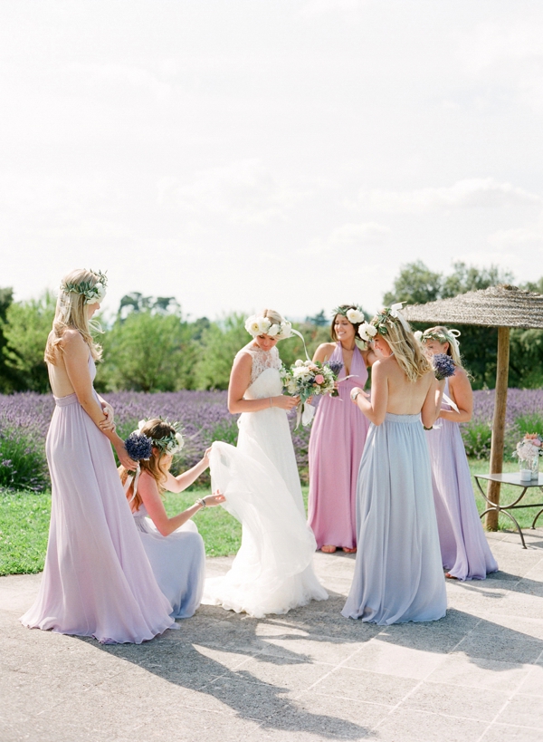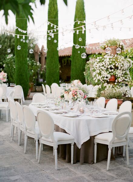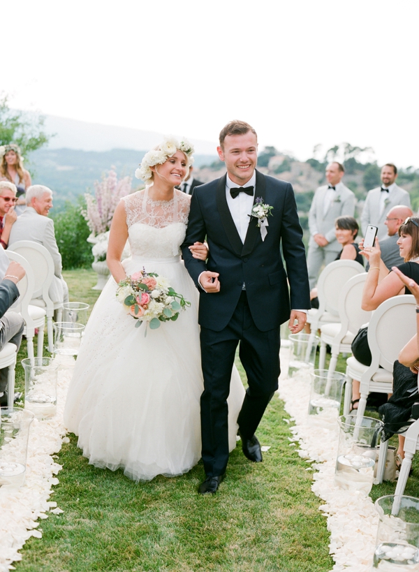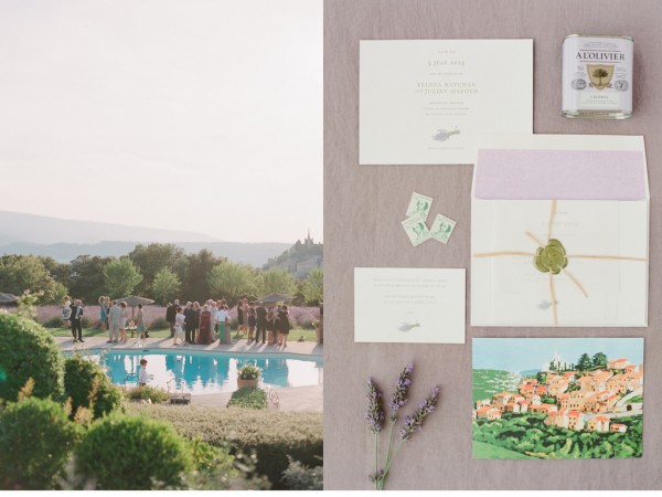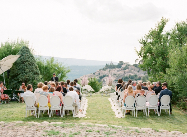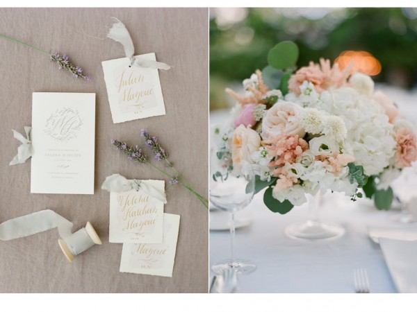 Yelena & Julien’s storybook-esque destination wedding in Provence featured a weekend filled to the brim with beautifully curated events. We focused on the natural beauty of the surroundings in the Luberon region and embracing the locale while tying in cultural traditions from both sides of the family (the bride’s family was from Russia – hello, vodka shots! The couple’s friends were from L.A. & NY, and the groom’s family was from France…hello tri-lingual ceremony programs!) Some highlights from the wedding: a custom gown, local lavender bouquets, organic table linens, custom embroidered napkins, a vintage Parisian jazz band, an elaborate multi-course tasting dinner by a Michelin starred chef, a champagne tower, traditional croquembouche and a jaw dropping ceremony backdrop overlooking the village of Bonnieux…and a celebrity DJ flown in from L.A. to spin late into the wee hours of the morning. And all perfectly captured by Jose Villa Photography.